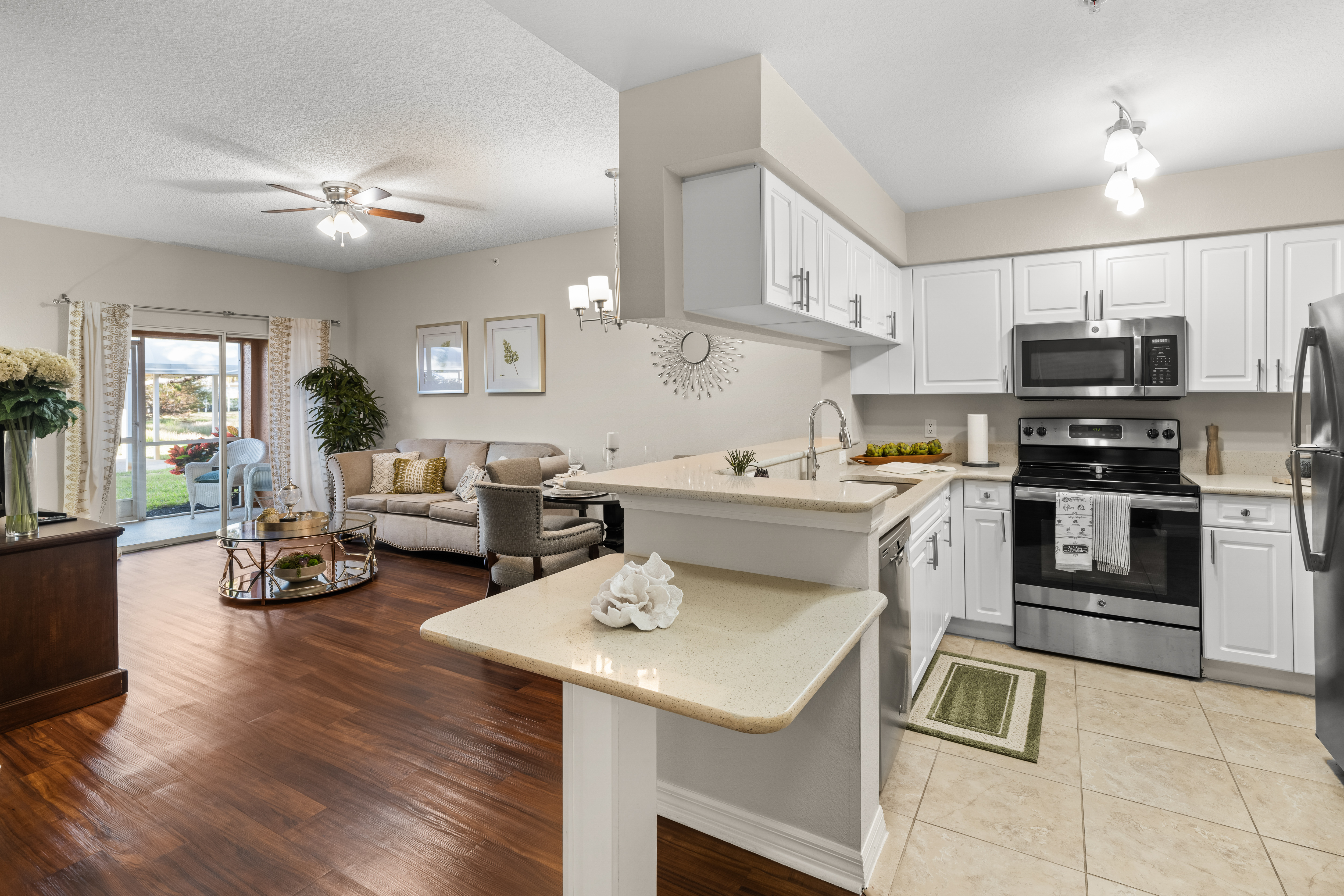 "It is so very friendly, and offers multiple opportunities to make friends and enjoy numerous activities and events! Our apartment is extremely comfortable and well designed. We look out over the fountain and lake and enjoy our lanai. Meals are offered, and we find the food to be mostly well presented and tasteful."